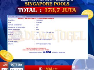 DEWATOGEL JACKPOT TOGEL DI SINGAPORE POOLS Rp 173.700.000,- LUNAS