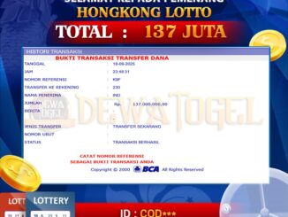 DEWATOGEL JACKPOT TOGEL DI HONGKONG LOTTO Rp 137.000.000,- LUNAS