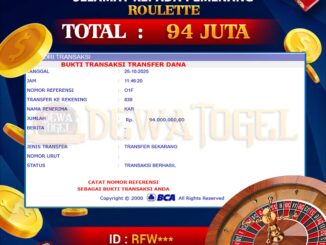 DEWATOGEL JACKPOT LIVE CASINO DI ROULETTE Rp 94.000.000,- LUNAS
