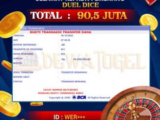 DEWATOGEL JACKPOT LIVE CASINO DI DUEL DICE Rp 90.500.000,- LUNAS