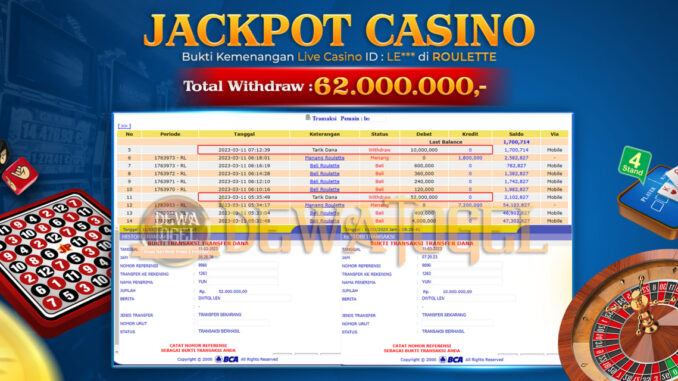 MEMBER DEWATOGEL MENERIMA PELUNASAN KEMENANGAN LIVE CASINO ROULETTE RP 62.000.000,- LUNAS