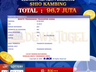 DEWATOGEL JACKPOT TOGEL DI SHIO KAMBING Rp 96.700.000,- LUNAS